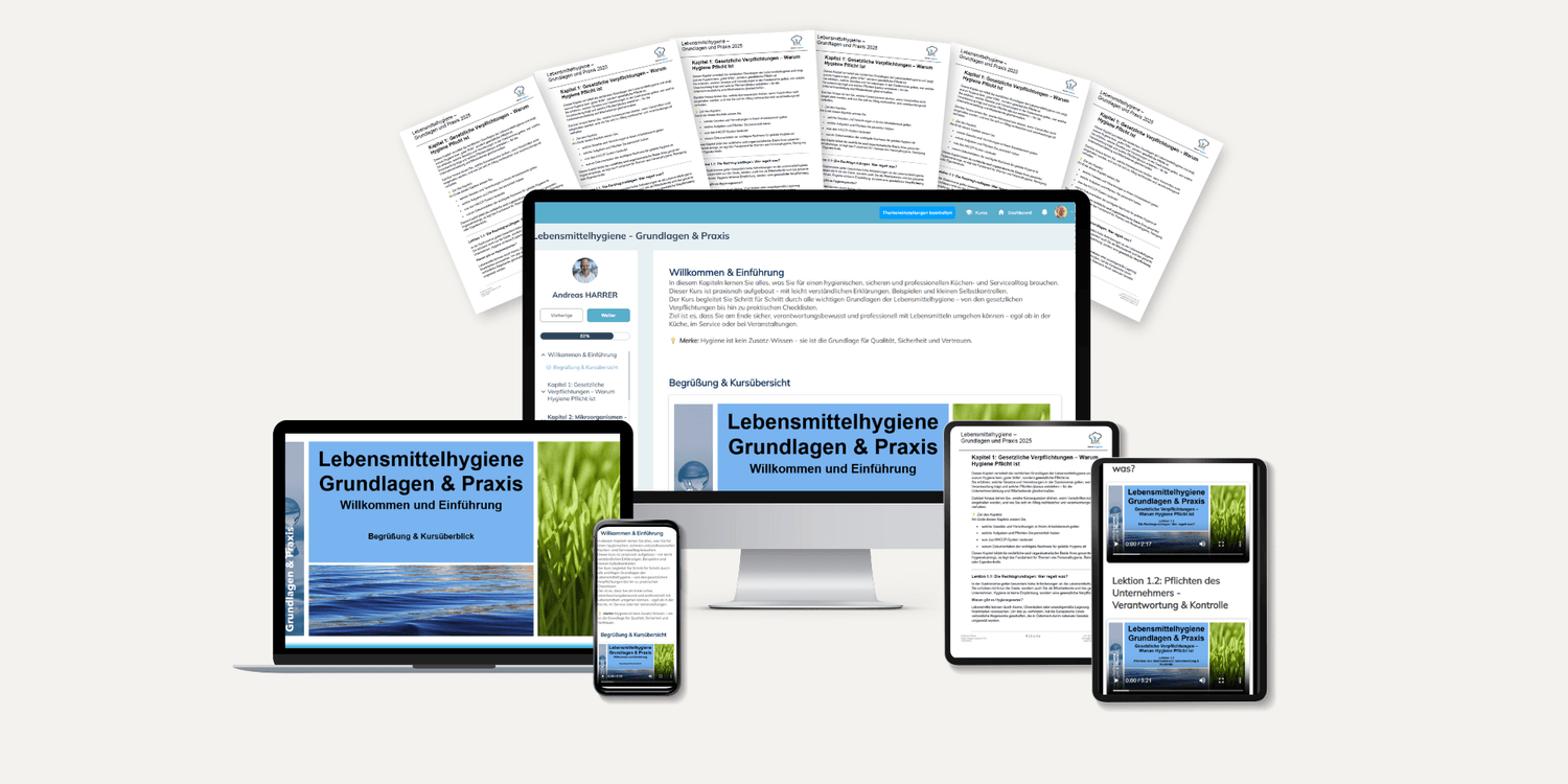 Der Onlinekurs für Küchen- & Servicepersonal, Lehrlinge und Quereinsteiger/innen – klar, verständlich und sofort im Arbeitsalltag anwendbar.